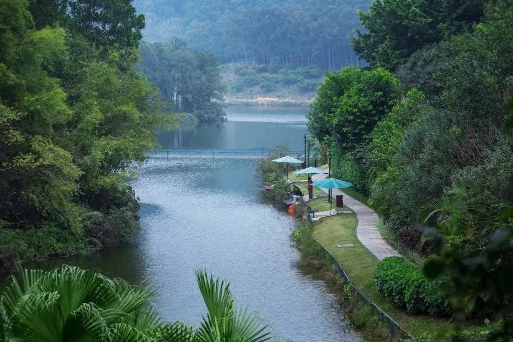 面积1.15万㎡的露天泳池,掩映在湖光山色之间,随处可见的椰树又满满热带风情。值得一提的是这里的泳池环绕客房而建,部分亲水客房打开阳台就能直接一跃而下,畅快清爽了!