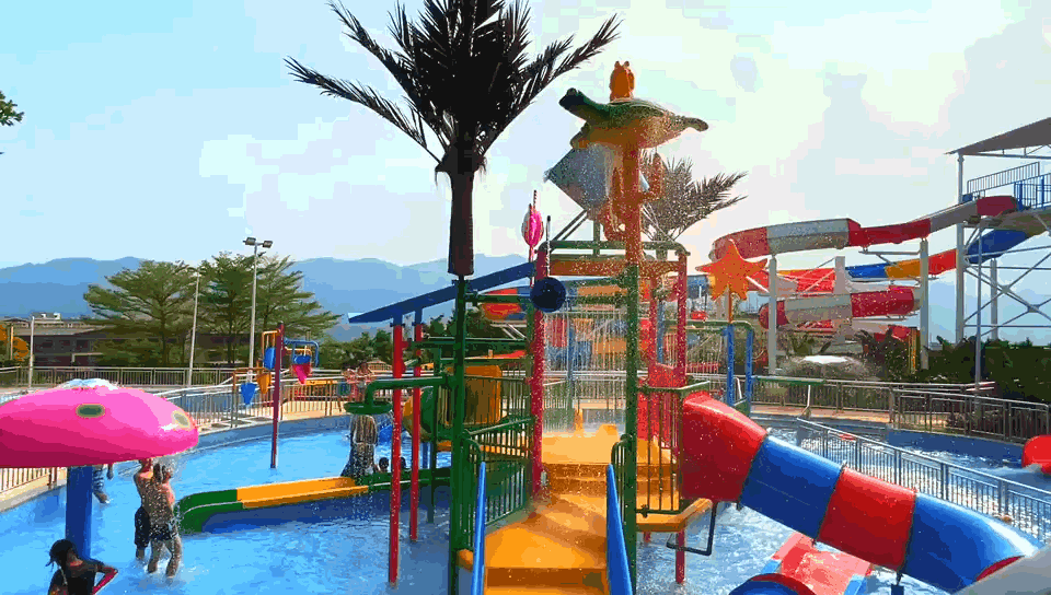 水上乐园有小喇叭、儿童水寨、彩虹滑道等